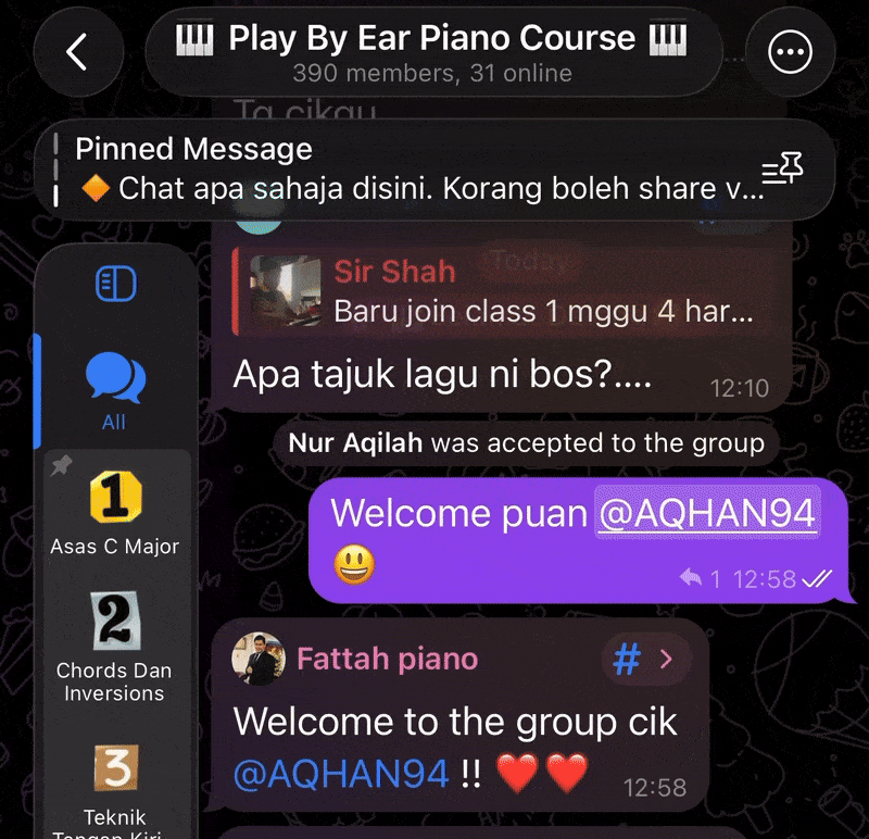 "Saya dah 2 minggu kelas dengan tuan, alhamdulillah semua ok tengah latihan dua tangan."