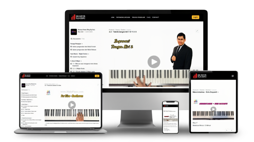 Tak perlu! Kursus ini fokus pada teknik “play by ear” (main ikut pendengaran).